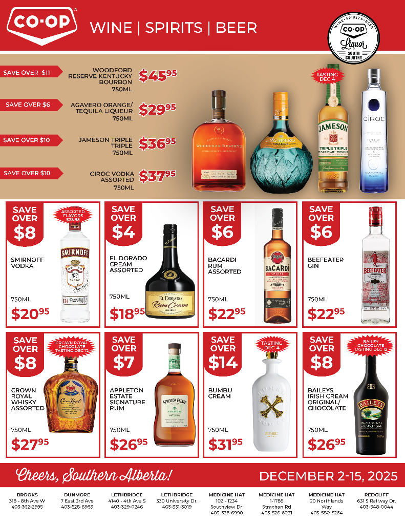 The newest South Country Co-op Liquor Flyer will take affect starting December 2, with the sales ending December 15. We are also giving away a Ninja Slushi, Philips Baristina, and a Ninja Creami in-store! Make sure you stop by to take advantage of these sales, and enter the giveaways by December 22!