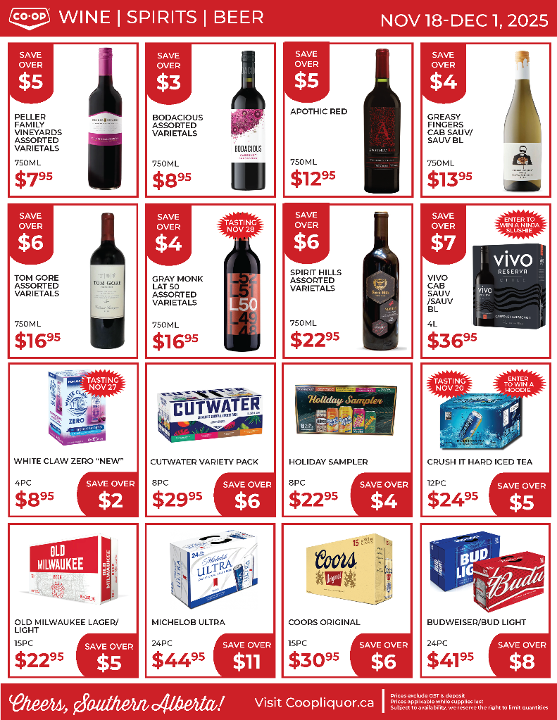 The newest South Country Co-op Liquor Flyer will take affect starting November 18, and run until December 1, 2025. We are running a Crush-it hoodie giveaway on our South Country Co-op Liquor social media channels. Stop by and cozy up for amazing savings!