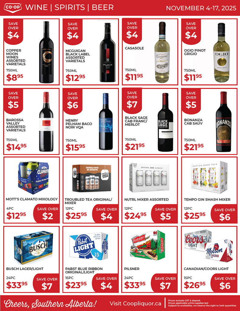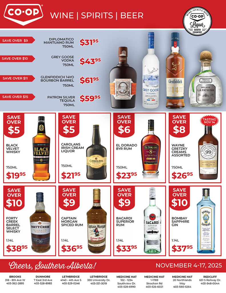 Greet November with a new flyer full of savings from South Country Co-op Liquor! The latest sale runs from November 4  17, 2025.